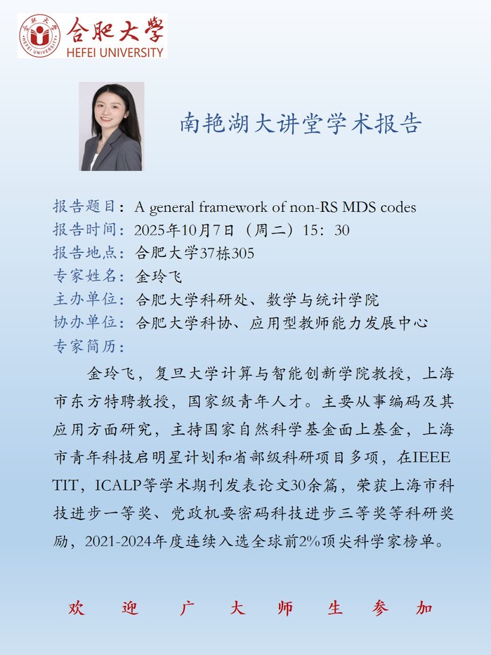 【南艳湖大讲堂】A general framework of non-RS MDS codes