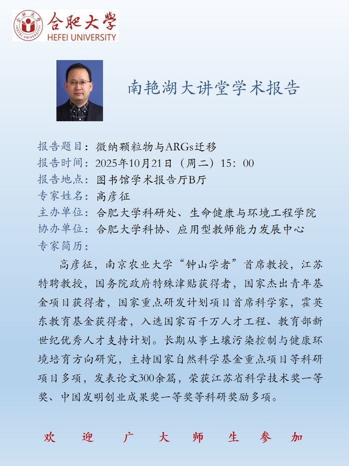 【南艳湖大讲堂】微纳颗粒物与ARGs迁移